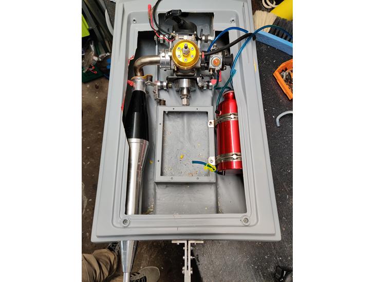 North 30cc motor med EL start og vandkøling, samt vandpumpe.. alu tank, tun udstødning osv.. Den har sejlet en gang i en anden båd, så den er som ny.