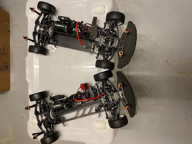 Her sælges 2 komplete Awesomatix A700, en med alubund og en med carbonbund. Tekin regulator på dem begge, LPR 13,5 og LRP 17,5 og Sanwa modtager