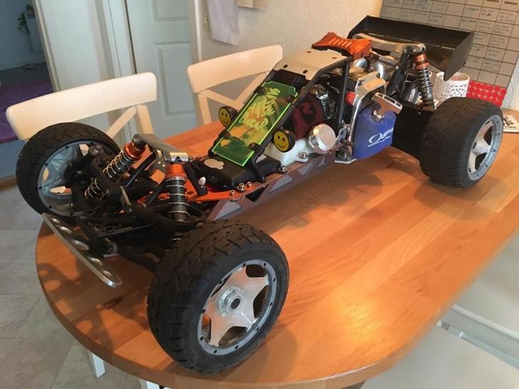 Renoveret BAJA med en masse alu upgrades og en del bolte og skruer er skiftet til rustfri. Har lige været helt adskilt og rengjort og har ikke været ude og trille efter renovering. Sælges med sender og modtager.