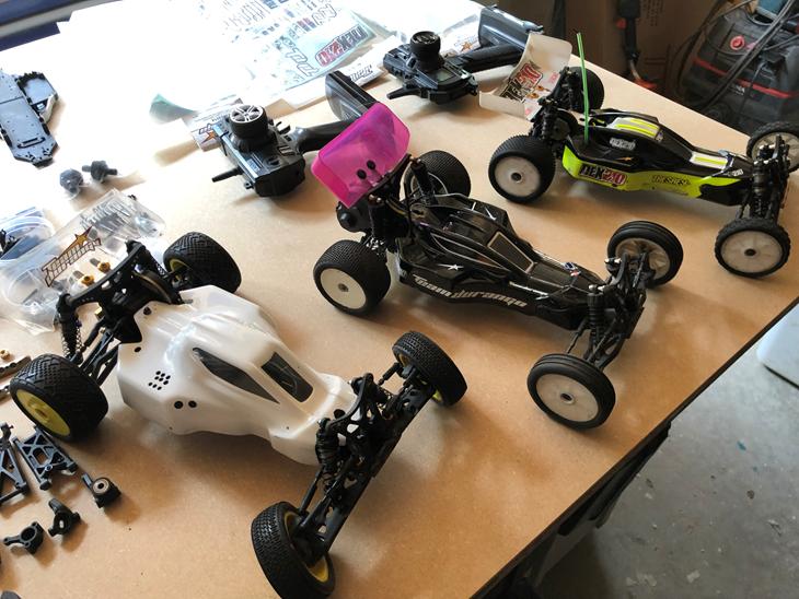 -DEX210 med rear-motor. Hobbywing ESC, Futaba servo, 13.5t Brushless motor og sender/modtager der kan skrues ned i hastighed. Dette har været min “lånebil” og egner sig glimrende til børn.