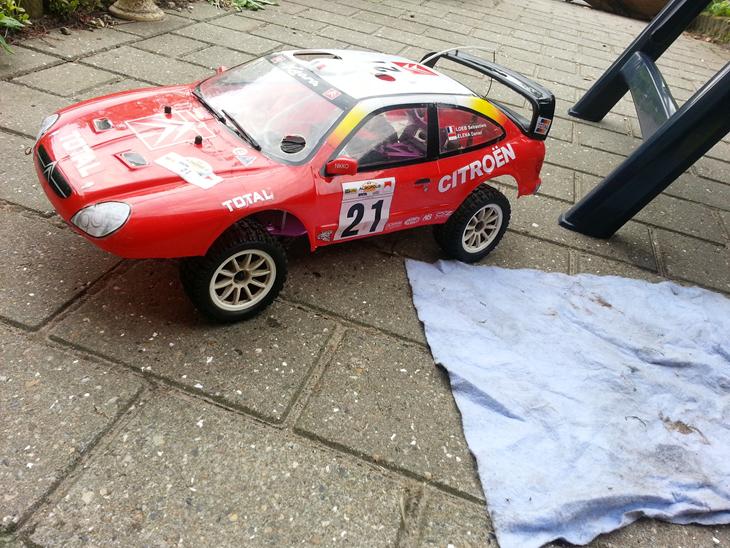 Jeg har lige fået gjort bilen lidt ren, så den ser anstændig ud, og fået smidt et par billeder.. Desværre har tidligere ejer klippet i karossen så den mangler lige kofangere og skørter hele vejen rundt.,, 4 nye body's er bestilt hjem til den... En Alfa 156.. En Ford Mondeo.. En "slash"-kopi... og et org Subaru til pyntebrug..