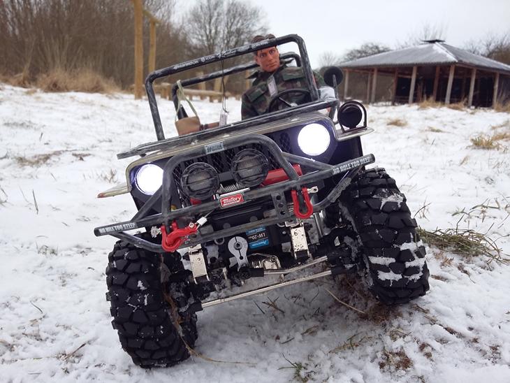 Har fået ny for kofanger med spil med fjernbetjening, ny chauffør der passer bedere i størrelsen, alu fælge der vejer det dobbelt af standart hjul og så har jeg pakket alt el ind så den nu burde være 99% vandtæt c")