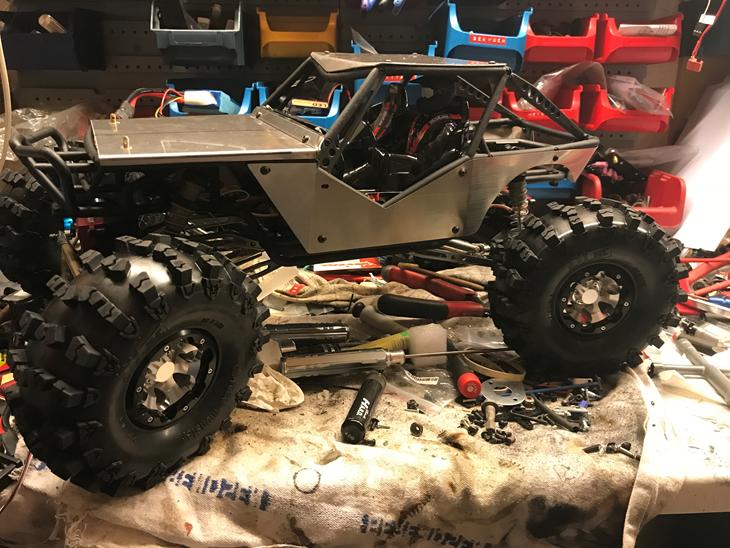 Listen af alu dele vil vokse som tingene kommer frem ,styreservoer for og bagaksel jep det er hjulsstyring og har købt trackstar ts 910 til for og bag titanium alu servoer med 30 kg trækkraft , motor goolrc 550 short course truck motor med sensor 4.5 t , esc bliver som altid tsky 120 a hobbywing kopi for bedre og billigere esc findes ikke,sidepaneler og bagende beklædning med led lys er indkøbt i rustfri stål og jeg har selv skåret og bukket tag og kølerhjelm i rustfri syrefast stålplade , så er der indkøbt 4 sæt plastik beadlock fælge 3 sæt alu beadlock fælge alle 2.2 og 3 sæt dæk mere en jeg havde i forvejen så der er lidt fodtøj og vælge imellem , dog ikke kun til wraithen da der er flere pakker dele på vej til en ren alu og stål 2,2 kravler + en komplet rtr trail bil men mere kommer senere om dem når de dukker op.