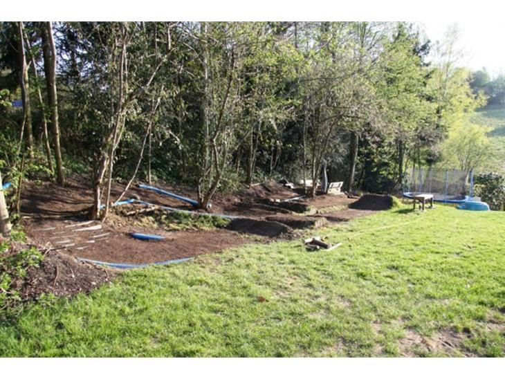 Endelig - så er hjemmebanen noglunde klar. Hårdt når man kun har en skovl men det var det værd! Banen er testet og godkendt af junior... tak til traxxas for deres 50%'s fart reducering - junior er jo kun 4:)