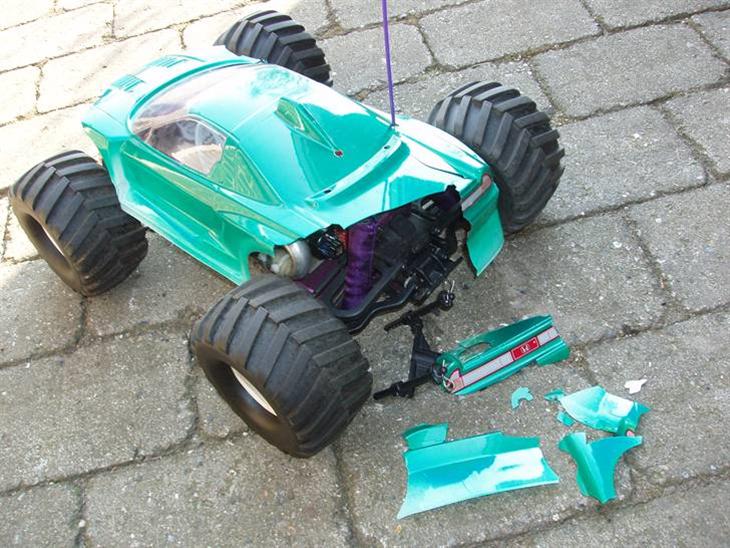 Crash. Kørte op ad en bakke, og så gik den baghjul, og slam. Så var det karosseri smadret. )-: