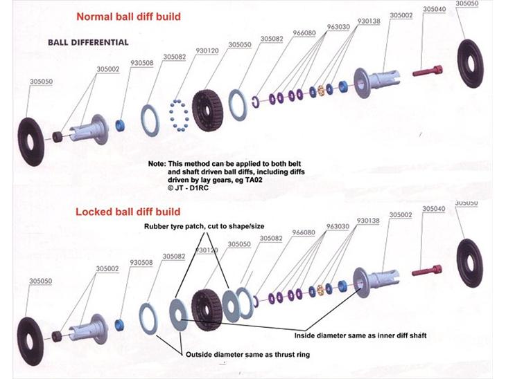 Flere og flere biler (herunder TA05) kører med kugledifferentialer, og i drifting er det godt at have låste differentialer, da bilen drifter meget nemmere, selv med relativt svage motorer.