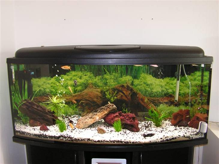 Lidt billeder af mit nye akvarie, ved ikke helt hvor mange liter det er på fordi det er med buet front, men målerne er 120x50x30cm og så en ordenlig bule på miden, der går sejlfine molly, pragtsmerlinger, 2 scallarer, amona rejer en krabbe, 3 suge maller hvor den ene er tæt på de 30cm og 10 neon fisk, og 2 male lignede fisk jeg ikke helt ved hvad hedder