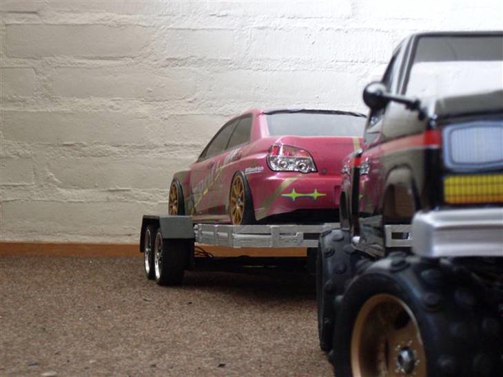 Dog kan jeg godt mærke at jeg skal have en crawler motor i den. Den er ikke så god til at trække traileren hvis der står 4-5kg på den. Og den kører alt for hurtigt. Et lille ryk på remoten og bilen på traileren glider af
