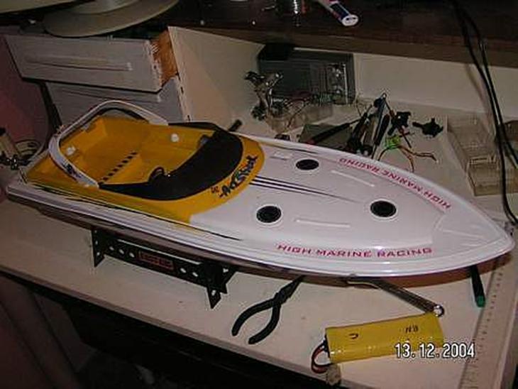 Jo, jeg købte båden på qxl for lidt over 300Kr, den var total ubrugelig med det medfølgende radiogrej, motorerne(350) er dog kanske ud mærket men dem har jeg skiftet ud med to Permax 480, i første omgang styrede jeg båden skruverne(varierede farten på dem individuelt) med det har jeg nu fixet med et hjemmelavet(og måske ikke så smukt) rorsystem, men det fungerer fantastisk godt. jeg skal nokk komme med flere billeder, så på gensyn :)