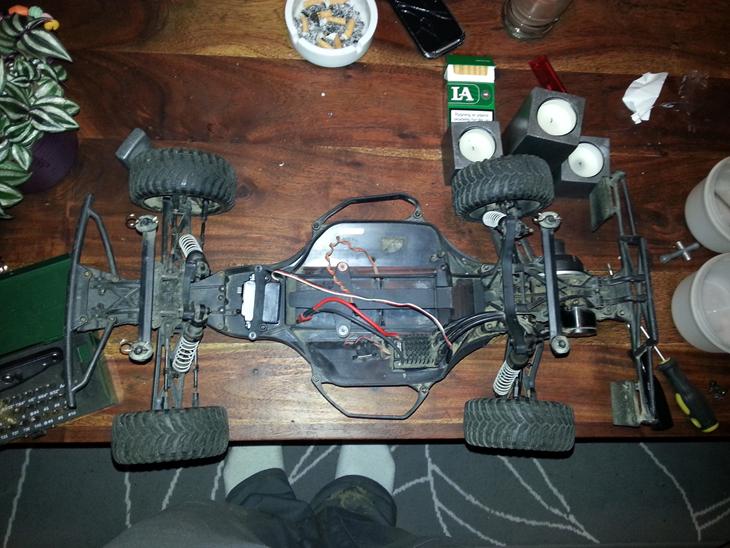 fik lige bilen igår, så har brugt en masse tid på at rense den, og bikse en servo sammen så jeg kan komme ud at køre med den, når jeg får batteri og controller hjem.