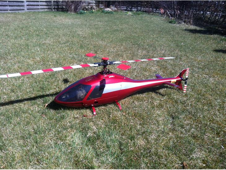 20/4-13 så er den monteret færdig med mekanik og hoved og halerotor. nu skal den blot en tur i luften :)