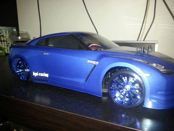 en fin lille onroad bil jeg selv valgte og bygge op fra bunden af (kit fra morfars.dk ) med et Nissan GT-R karrosseri som er malet i metalisk blå, og nogen Work XSA 02C med nogen Yokohama Advan T-Drift dæk på, de er bedst når bilen er kommet op i fart har jeg fundet ud af, de dur ikke ordentligt med lav hastighed syntes jeg, men så har man også mulighed for at kunne styre bilen lidt bedre, end med pvc dæk som man brugte i gamle dage :)