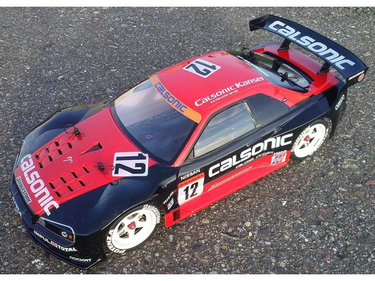 Karosseriet har jeg selv malet. Det er inspireret af en nissan R390 race car. Hullerne i motorhjelmen tog et stykke tid og skære ud. Da jeg fik chassiet skilte jeg det fuldstændig ad, for og vaske det. Selvom det aldrig havde kørt, var det støvet, og der var rendt lidt olie ud af støddæmperne ned på bærearmene. Jeg har også slebet alle kanterne på kulfiberen med fint sandpapir, så der ikke er skarpe kanter på delene mere. Jeg syntes det er pænere sådan.