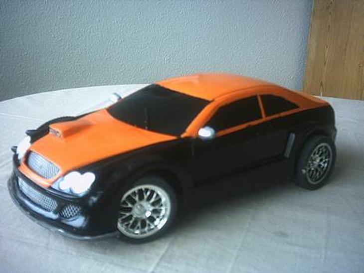 jeg har fårst slebet den ned, så begynte jeg at lave hood´et om... ved samme tid begyndte jeg med fronten og sideskørterne.... da jeg var færdig med det syntes jeg også at bagsmækken skulle have en tur.. så malede jeg den Sort/orange, og i mens malingen tørede lavede jeg baghjulende til Deep Dish.... jeg malede også sidespejlende...sænkede den,og lavede afgangsrør... skal huske at sige at jeg har sat gitter i, og at jeg har slepet forlygterne matte