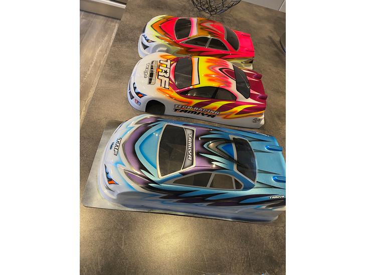 Har disse 3 retro rc turingcar karosser som aldrig har været monteret. Lygter og køle grill er malet i dem. 500kr pr stk