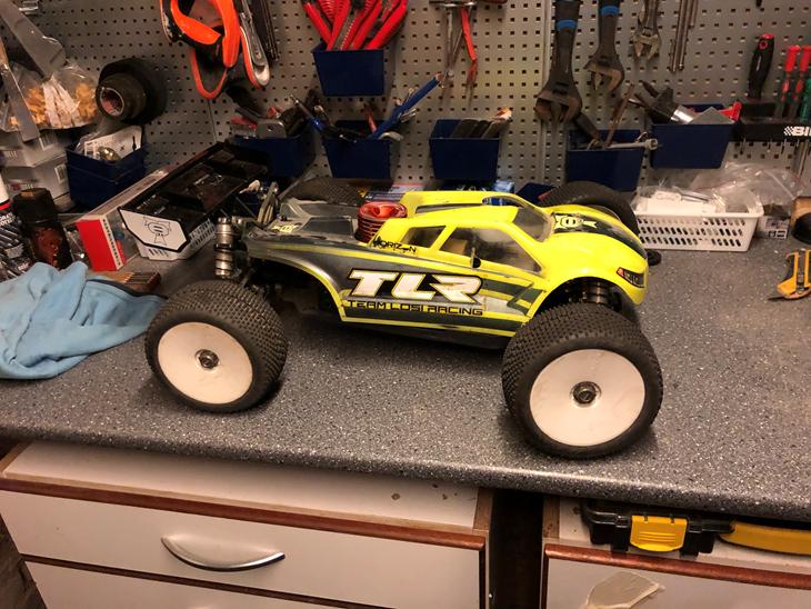 TLR starter box ( nyeste model ) modificeres til LOSI 8ight 4.0 truggy ( fikserings klodser er lavet tyndere da “svinghjul” sider højere på 4.0 )
