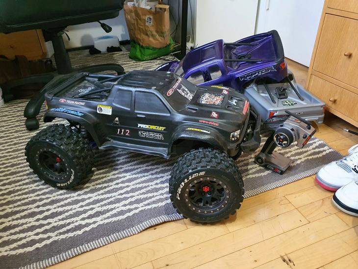 Jeg bliver desværre nødt til at sælge den da jeg har kigget på en ny telefon i lidt tid som jeg gerne vil købe da min efterhånden bliver for gammel og fordi den bare sidder på hylden og ser godt ud (aka samler støv hahaha). skriv og vi kan finde ud af nogen mht afprøvningen af bilen. Bilen har kostet lidt over 30000 for mig alt i alt siden jeg fik den hvis man sætter det hele sammen... den var 11000 ny af og så er der virkelig mange opgraderingsdele, bare de alu-dele kostede ca. 5000 i sigselv, og så 1500 for hver indestructible body, og der er 2 af dem, 1000 for ford raptor body, 1000 for batterier, 1800 for remoten med batterier, 1200 for servoen, 2000 for esc'en, 2000 mere for motoren osv osv osv, jeg kunne blive ved...
